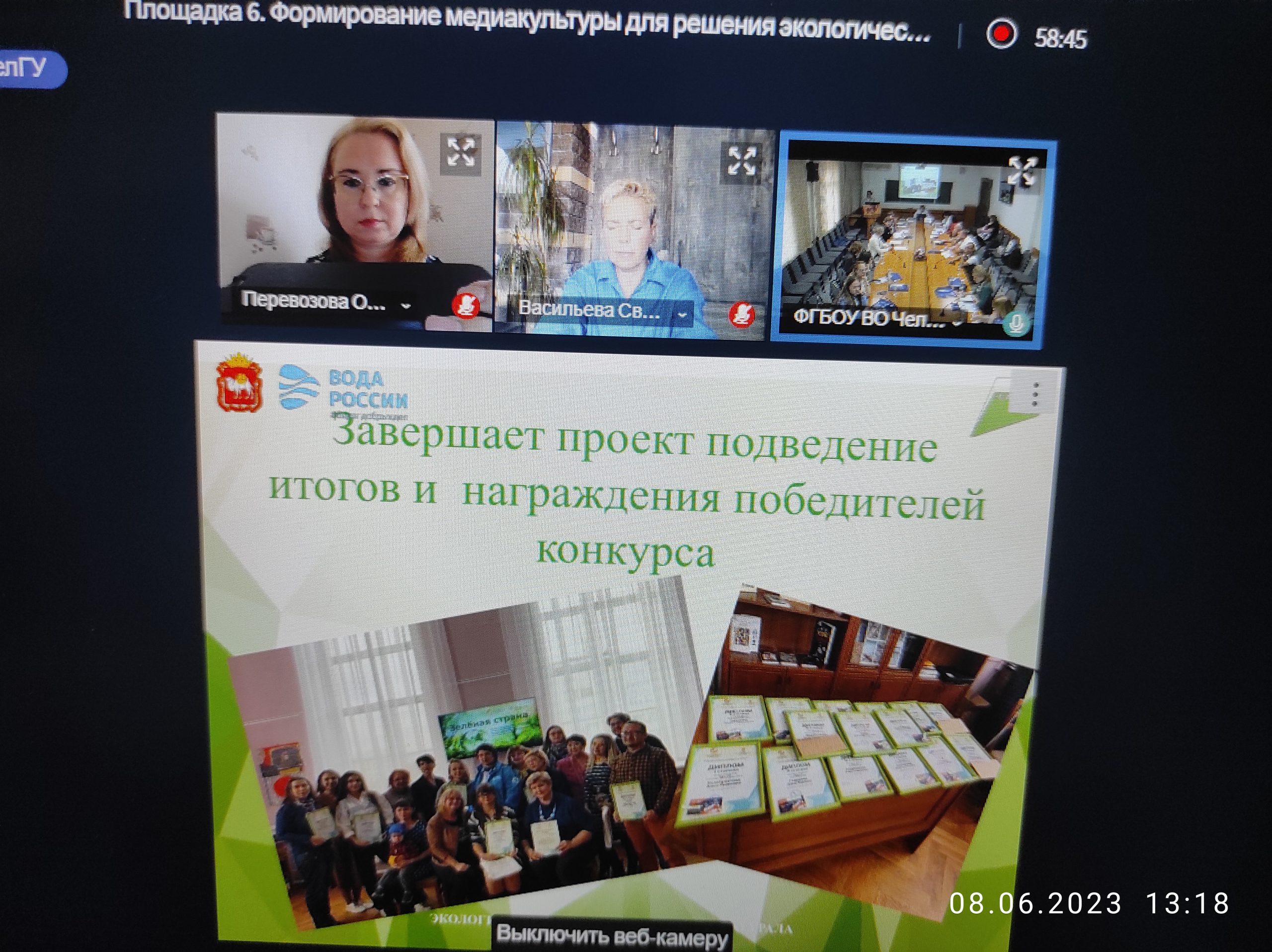 На тематической площадке №6 «Формирование медиакультуры для решения экологических, нравственных проблем и снижения социальной напряженности в обществе» выступила Перевозова Ольга Владимировна, к.пед.наук, доцент, доцент кафедры журналистики, рекламы и связей с общественностью Института медиа и социально-гуманитарных наук ФАГОУ ВО «ЮУрГУ (НИУ)» с темой доклада: «Медиатизация экологической информации: региональный опыт освещения экологических вопросов». Выступление вызвало живой интерес и дискуссию участников.