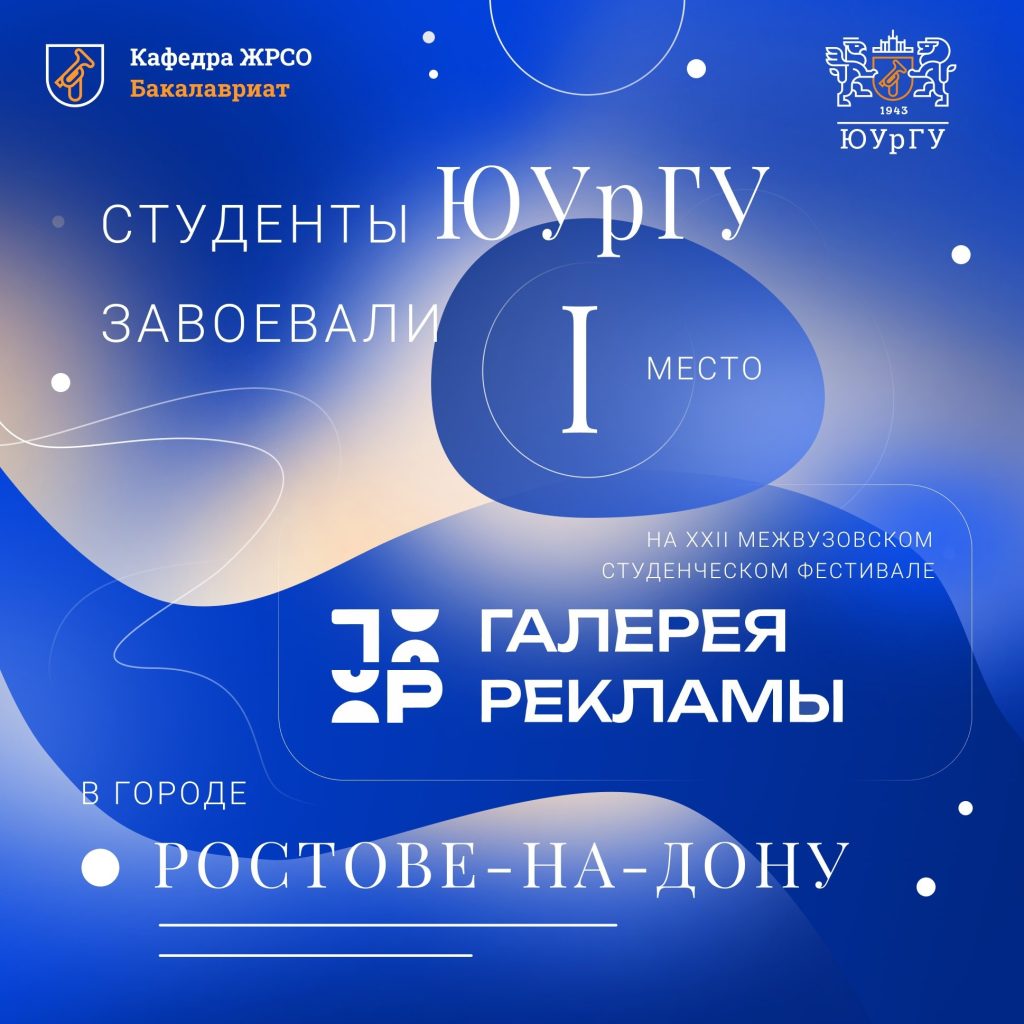 Команда студентов 2 курса направления «Реклама и связи с общественностью» кафедры журналистики ,рекламы и связей с общественностью ИМСГН ЮУрГУ заняла первое место в номинации «Социальная реклама» на Межвузовском студенческом фестивале молодых креаторов в Ростове-на-Дону «Галерея рекламы»!