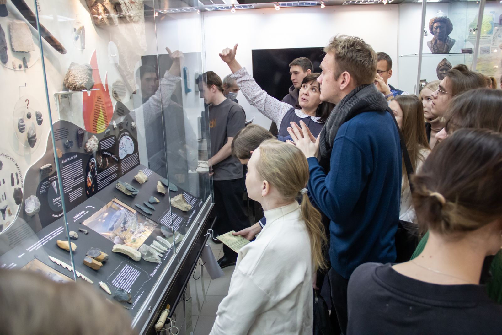 «Действительно, почти вся наша история сейчас предстает перед нами. Организация даже небольшой выставки требует совместных усилий многих людей: ученых, исследователей и творческих работников. Воспроизвести эпоху Каменного века особенно сложно, однако благодаря совместной работе нам удается представить её наиболее полно и интересно», – подчеркнула заведующая учебным музейно-выставочным комплексом Юлия Васина.